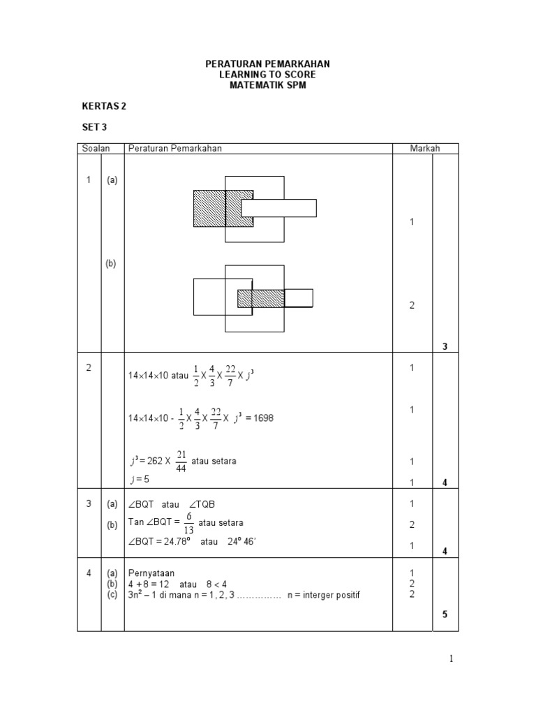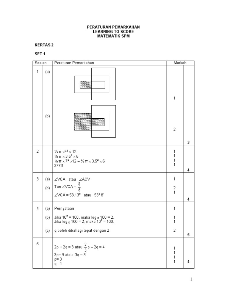 Matematik Skema Spm Mat Kertas 2 Set 1 Pdf